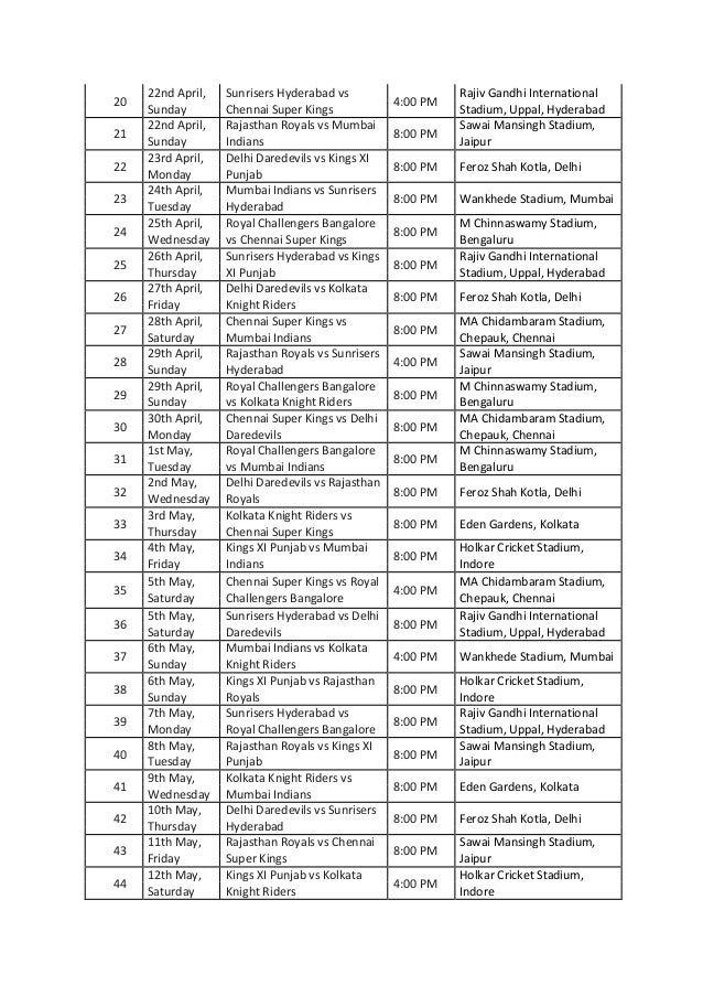 Ipl 2019 Schedule Pdf Free Download / 0 ratings0% found this document useful (0 votes).